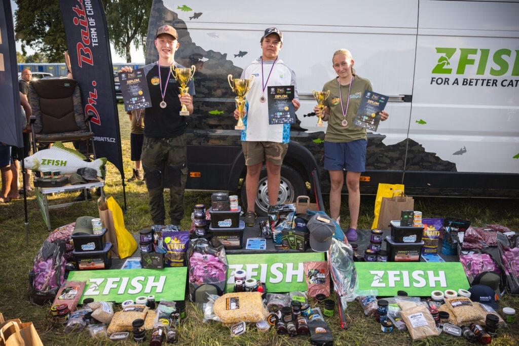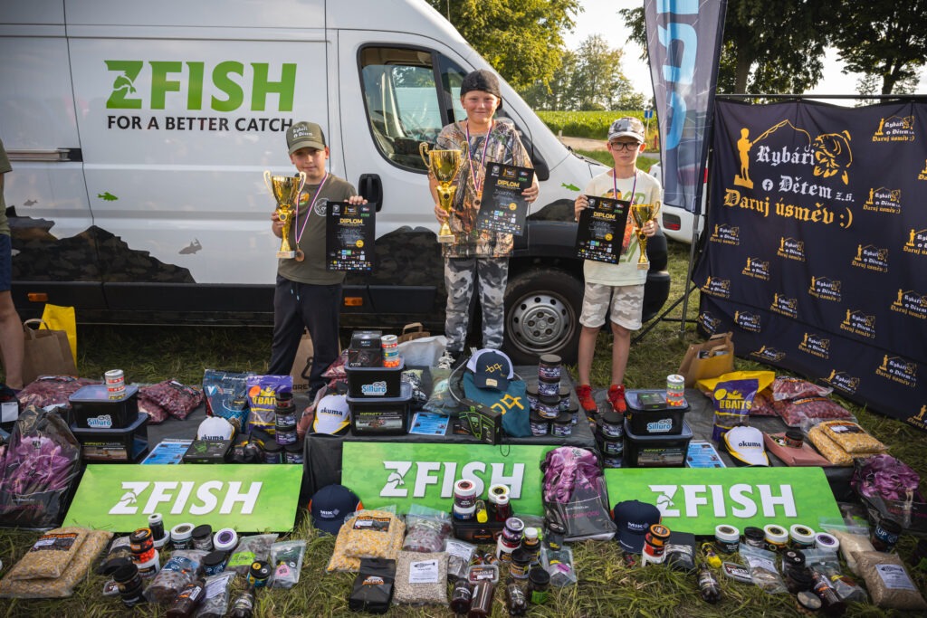 | 2. místo David Matouš | 1. místo a top ryba závodu Adam Maliňák | 3. místo Gabriela Vrbová |